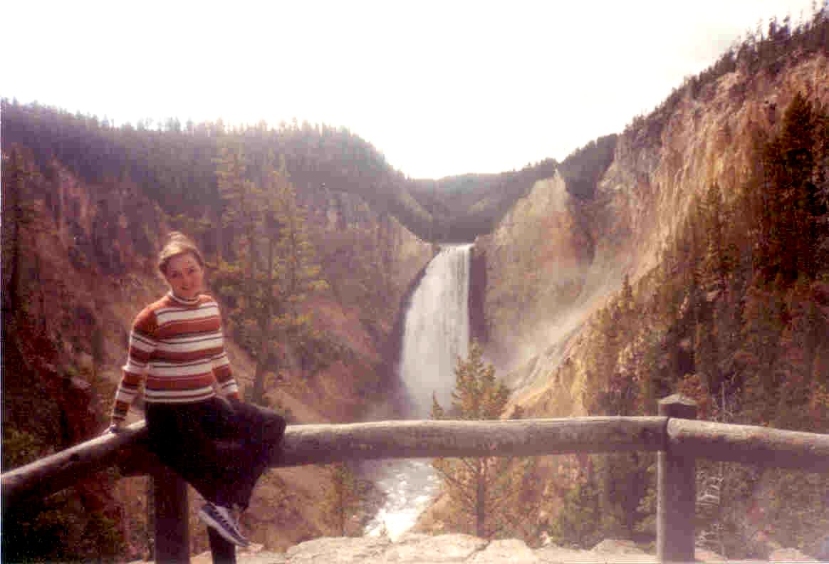 wonderful waterfall in Yellowstone and me