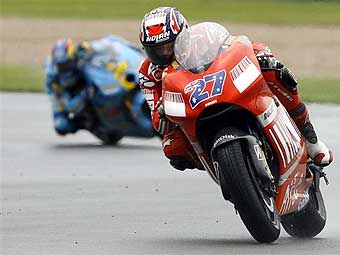 Мотогонщик Ducati Кейси Стоунер выиграл Гран-при ВеликобританииПобеду на этом этапе одержал лидер нынешнего сезона австралиец Кейси Стоунер из Ducati, а его главный преследователь в общем зачете итальянец Валентино Росси из Yamaha остался четвертым, сообщает Autosport. Стоунер сумел опередить Колина Эдвардса из Yamaha, который лидировал на протяжении большей части дистанции, но в итоге не выдержал темпа лидера чемпионата и отстал на финише почти на 12 секунд. Третье место занял Крис Вермюлен из команды Suzuki. Гонка началась на влажной от дождя трассе, и в первой ее половине лидеры действовали не так активно. Затем, когда трек стал подсыхать, вперед вырвались фавориты. Одним из героев Гран-при Великобритании мог стать австралийский дебютант Энтони Уэст из команды Kawasaki, который стартовал 17-м, но переместился на четвертое место, однако в середине дистанции он не смог удержать мотоцикл в одном из поворотов и влетел в защитную стену из покрышек. В итоге Уэст финишировал 11-м, что не принесло ему зачетных очков. В чемпионате пилотов уверенно лидирует Стоунер, набравший 165 очков. Валентино Росси отстает на 26 очков. Следующая гонка чемпионата MotoGP состоится 30 июня в голландском Ассене.