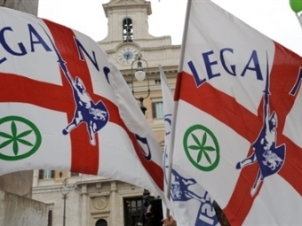 Флаги правой политической партии "Лига Севера". Фото AFP