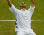 В первом сете долгое время шла совершенно равная борьба. Теннисисты не только не смогли взять чужую подачу, но даже и брейк-пойнтов не добились. Как следствие, сет кончился тай-брейком. В решающем гейме также долгое время ни один из теннисистов не мог добиться преимущества, но при счете 5-4 в пользу Федерера Филиппуссис допустил двойную ошибку и в итоге проиграл гейм 5-7. После этого в игре австралийца что-то сломалось. Нельзя сказать, чтобы Федерер играл намного увереннее, но он, в отличие от соперника, почти не ошибался. Филиппуссис же продолжал делать двойные, да и по ходу розыгрышей отправлял мяч совсем не туда, куда надо. Федерер сделал брейк в первом же гейме второго сета, затем еще один и уверенно повел со счетом 3-0, а затем и 4-0. У Филиппуссиса все валилось из рук, а Федерер играл очень четко. Сет швейцарец выиграл со счетом 6-2. В третьем сете Филиппуссис пришел в себя. Он смог наладить игру на своей подаче, правда, взять чужую шансов у него практически не было. В общем, третий сет стал почти точной копией первого. И он также кончился тай-брейком. Но на этот раз Федерер захватил инициативу в гейме с самого начала и довольно быстро повел со счетом 6-1. Филиппуссис отыграл два матчбола, но на третьем отправил мяч в сетку. Федерер рухнул на траву и расплакался от счастья. На данный момент он может считаться лучшим специалистом мира по игре на траве. Во всяком случае, на этом покрытии в этом сезоне он не проиграл ни разу. Роже Федерер (Швейцария, 4) - Марк Филиппуссис (Австралия) 7-6 (7-5) 6-2 7-6 (7-3) rbc Другие Новости в этой рубрике Оуэн выбыл до весны ''Челси'' с трудом отрывается от конкурентов Хоккей. Словаки грубо играли против капитана российской ''молодежки'' Кириленко подстрелил медведя Марат Сафин не сыграет за сборную России на Кубке Хопмана по теннису В правилах футбола назрели изменения? Серена Уильямс выиграла Уимблдон Федоров ушел из ''Детройта'' ''Бока Хуниорс'' выиграл Кубок Либертадорес Гран-при Европы стало худшим для ''Феррари'' Эра Лича в ''Рейнджерс'' завершена Роналдо переживает о потере Рональдиньо Медицинский осмотр Дэвида Бекхэма покажут по телевидению Климат внес коррективы в сроки проведения Олимпиады-2008 Майклу Джордану не удалось купить собственный баскетбольный клуб Тьерри Анри считает, что провел лучший сезон в своей карьере Бой Кличко - Льюис собрал высокие телерейтинги Виталий Кличко не сможет драться в течение шести месяцев Иракские футболисты разгромили команду американских солдат со счетом 11:0 Борис Беккер считает, что современный теннис стал скучным |