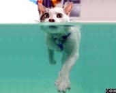Считается, что кошки терпеть не могут воды, и когда хозяевам приходится подвергать их водным процедурам, они прилагают все усилия, чтобы побыстрее сбежать от этой экзекуции. Но встречаются представители кошачего племени, которых из воды не вытащишь за уши. Сью Слэйд из Великобритании, хозяйка кота по имени Кастард, заметив, что ее любимец странно прихрамывает, решила проконсультироваться с ветеринаром, который поставил диагноз - слаборазвитые задние лапы. Приятель миссис Слэйд посоветовал ей попробовать научить кота плавать, утверждая, что именно эта процедура помогла его собаке, страдавшей схожим заболеванием. Он порекомендовал находящийся недалеко от Уорнинглида, где проживают Сью с Кастардом, ветцентр, в котором как раз есть специальное оборудование, а именно, гидротерапевтический бассейн для собак. Миссис Слэйд решила попробовать, хотя и предполагала, что кот вряд ли будет в восторге от подобных упражнений. Но каково же было изумление хозяйки, когда она обнаружила, что ее питомец получает истинное наслаждение, барахтаясь в бассейне. Теперь два раза в неделю миссис Слэйд отвозит своего любимца в Брукс Грин, где находится лечебница. Там Кастард, одетый в специальную экипировку, в течение 15 минут плескается в бассейне, орудуя лапами как заправский пловец и мяукая от удовольствия. Сью утверждает, что у ее любимца, благодаря таким процедурам, настолько укрепились лапы, что теперь он может даже запрыгнуть на кухонный стол. "Я просто в восхищении," - говорит довольная хозяйка. The Sun Другие Новости в этой рубрике В Чехии перепишут летучих мышей Жокей оконфузился перед тысячами болельщиков Кот спас хозяину жизнь, позвонив 911 Собачий год Китайцы рекордно наловили рыбы Коала приготовились к оперативному вымиранию Садовода обвиняют в ритуальном убийстве ежей Aмериканцы вывели мышей-бисексуалов Индийская женщина вскармливает грудью мартышку Собака - тотемное животное Крысы спасли миллион китайцев Америка отмечает День сурка Вы не встречали попугая с йоркширским акцентом? "Автомобиль будущего" будет работать на хомячках Фламинго выкармливают птенцов кровью Кабул: "очистка" города от собак Собакам нечего делать в казенных машинах министров! Зябнущих коз одели в свитера На Блэра напала рысь Пес, мартышка и лягушка по-прежнему будут служить науке |