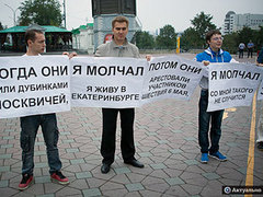 Администрация Екатеринбурга привлечет к административной ответственности организаторов митинга в поддержку арестованных по делу о беспорядках на Болотной площади. Чиновники обвиняют активистов в том, что они завысили число участников акции, из-за чего около десяти митингующих охраняли 150 полицейских. | Иван Охлобыстин разработает стратегию "Правого дела"
