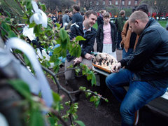 Участники акции гражданского протеста, начавшейся после инаугурации Владимира Путина, вернулись в сквер на Иссакиевской площади Санкт-Петербурга. Активисты проводили в этом сквере "народные гуляния" с 10 по 22 мая, когда сквер закрыли на ремонт и протестующие были вынуждены его покинуть. | Справоросы начали в Госдуме итальянскую забастовку