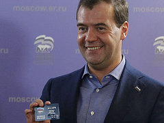 Премьер-министру России Дмитрию Медведеву вручили партийный билет "Единой России". Церемония прошла 22 мая на собрании первичного отделения "Компас" в московском районе Раменки. 26 мая на партийном съезде ожидается избрание Медведева председателем партии вместо выигравшего президентские выборы Владимира Путина....