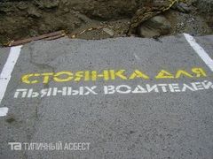 В Асбесте Свердловской области неизвестные активисты организовали несколько "стоянок для пьяных водителей". На "стоянках" нанесена типичная разметка, предлагающая водителям припарковаться в яме или об фонарный столб. Такая разметка оснащена подписью "стоянка для пьяных водителей". | Дорогу в Кемерово разметили розовой краской