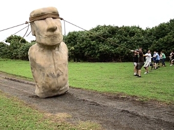 Ученые утверждают, что именно такой способ передвижения использовали местные жители, изготовившие чуть менее тысячи статуй, установленных по всему острову. По словам антропологов, об этом свидетельствует форма моаи, благодаря которой ее центр массы расположен внизу и сдвинут немного вперед - это существенно упрощает "шагание". Кроме того, об этом говорит и тот факт, что большинство брошенных на пути из каменоломни статуй лежат "лицом вниз" там, где дорога идет вниз и "лицом вверх" там, где дорога идет вверх.