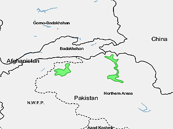 Распространение Бурушаски на севере Пакистана показано зеленым. Изображение c сайта http://llmap.org